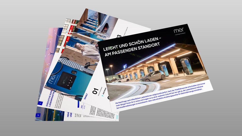 In Whitepapers erfahren Interessierte, wie eine Lade-Infrastruktur, etwa ein Depot für Lkw oder Busse, neu aufgebaut wurde und wie Mer den gesamten Prozess plant und begleitet.