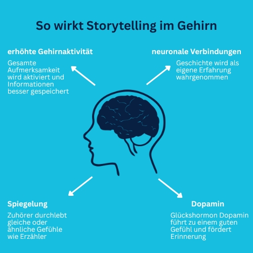 Während Fakten den rationalen Teil unseres Gehirns ansprechen und schnell wieder herausgefiltert werden, aktivieren Geschichten, die Bilder und Emotionen erzeugen, mehrere Hirnareale gleichzeitig und das Wissen bleibt erhalten. So wird Kommunikation also „gehirngerecht“.
